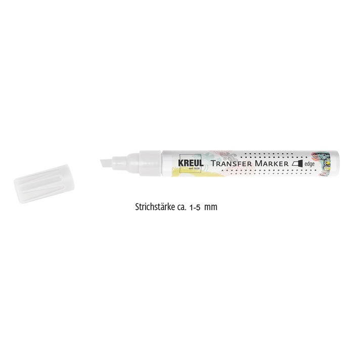 Für empfindliche Materialien oder feine Motive kann eine **kleinere Strichstärke** sinnvoll sein der Marker hat eine Keilspitze, Strichstärke ca. 5 mm.