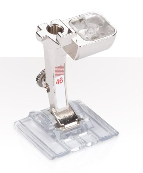 Stöbern Sie jetzt im umfangreichen Sortiment von BERNINA und lernen Sie den transparenten Biesen-Deko-Stichfuss # 46C kennen.